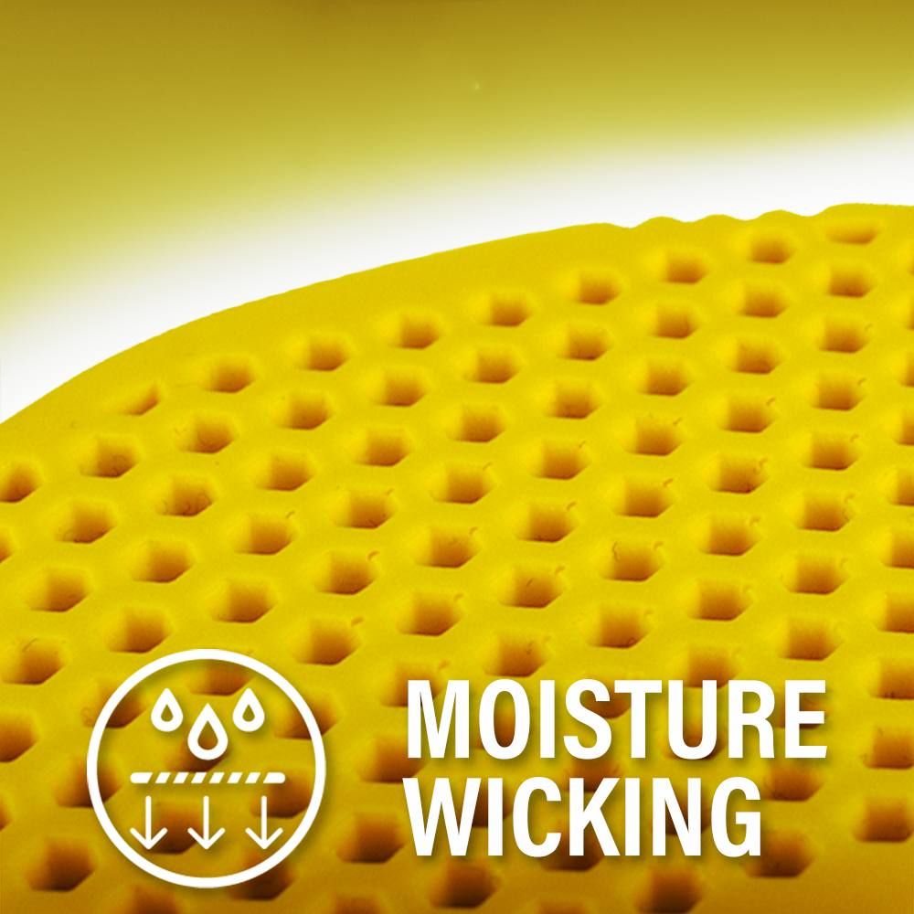 Staying dry is not only key for comfort, but also for warmth. TriTech™ insoles manage moisture in two key ways. First, the felt top layer wicks away moisture to prevent dampness. Second, excess moisture exits the top layer through hexagonal openings built into the bottom polyurethane (PU) foam layer.