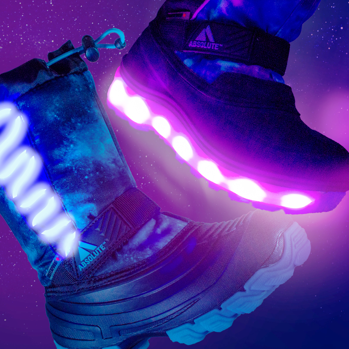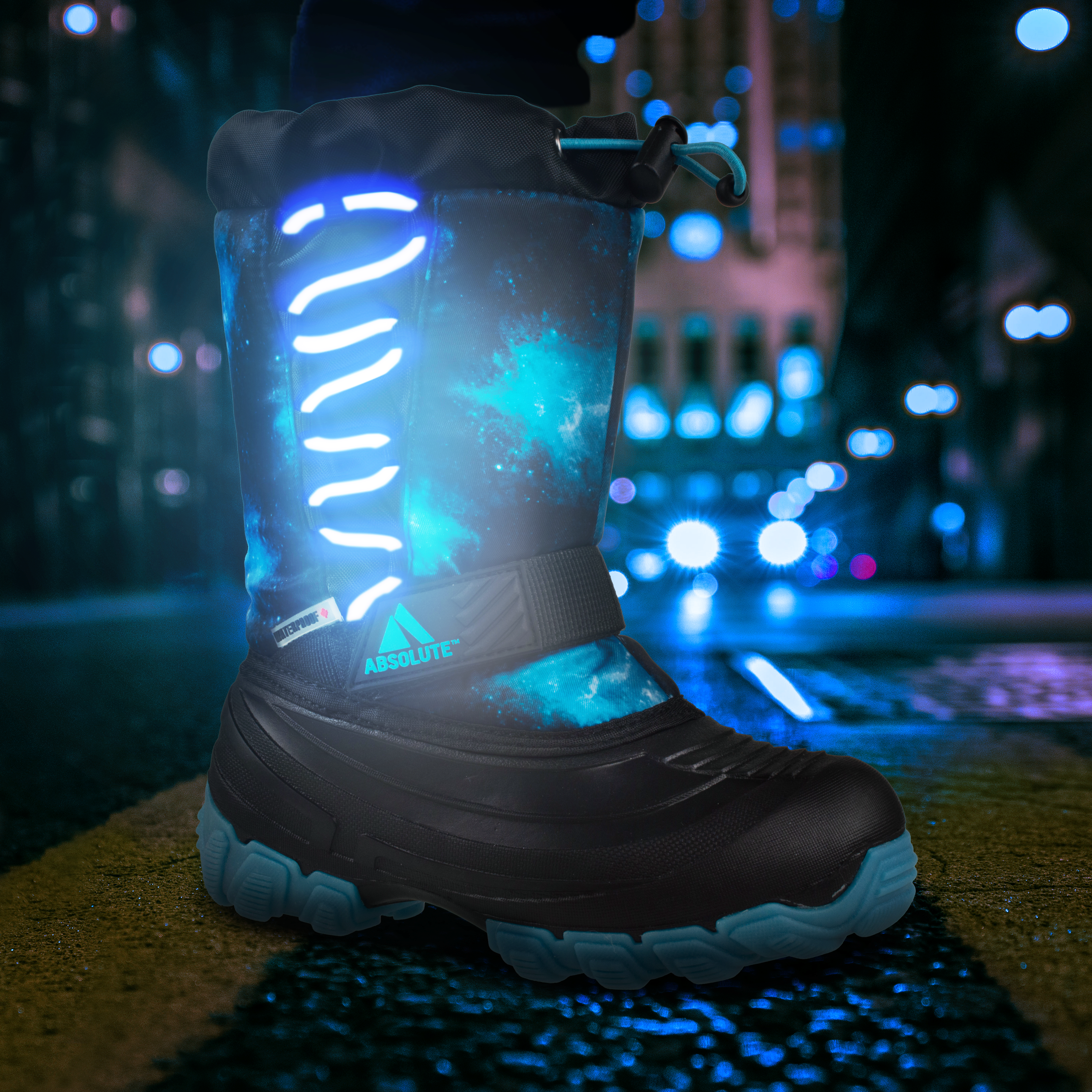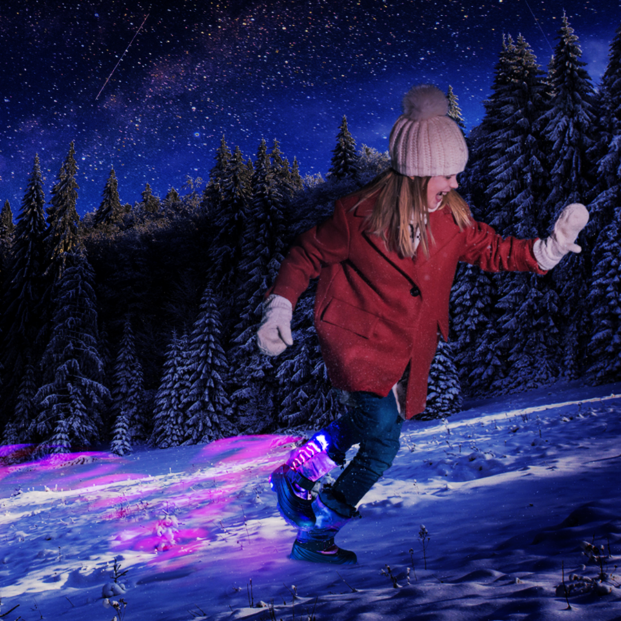 In contrast, our Northern Lights™ styles provide active nighttime safety. Regardless of surrounding lighting conditions, kids remain highly visible to others (e.g. drivers) even at a distance thanks to the bright flash of LED lights flashing brightly from our boots.