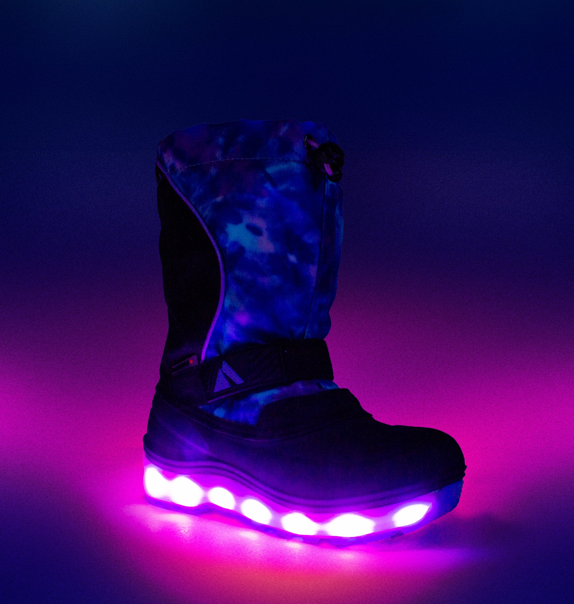 With bright flashing lights, these Northern Lights™ LED boots bring fun, excitement, and safety with every step. Press a button to cycle through colours and light activation sequences. Rechargeable via USB.