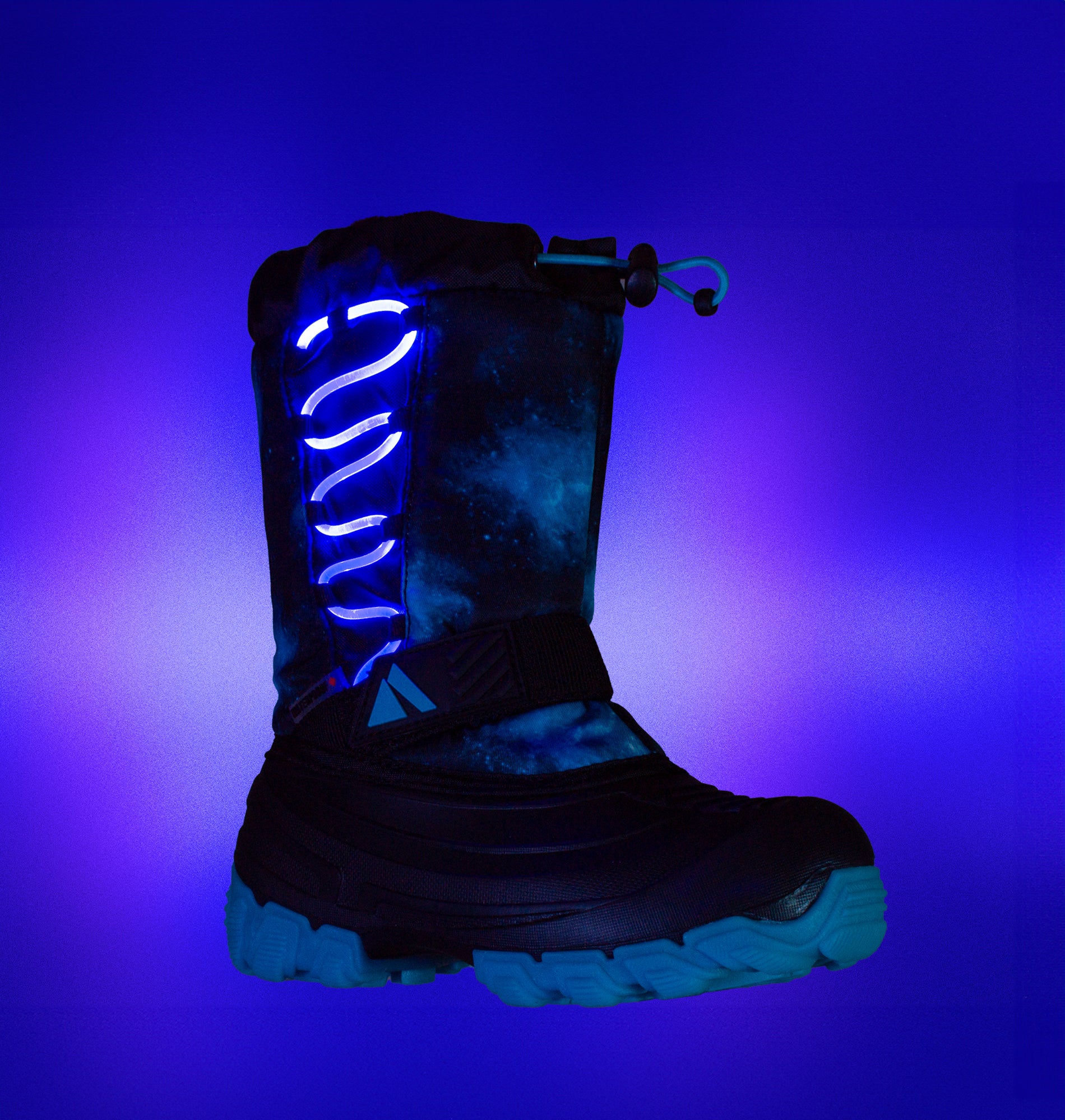 With bright vibration activated flashing lights, these Northern Lights™ LED boots bring fun, excitement, and safety with every step.