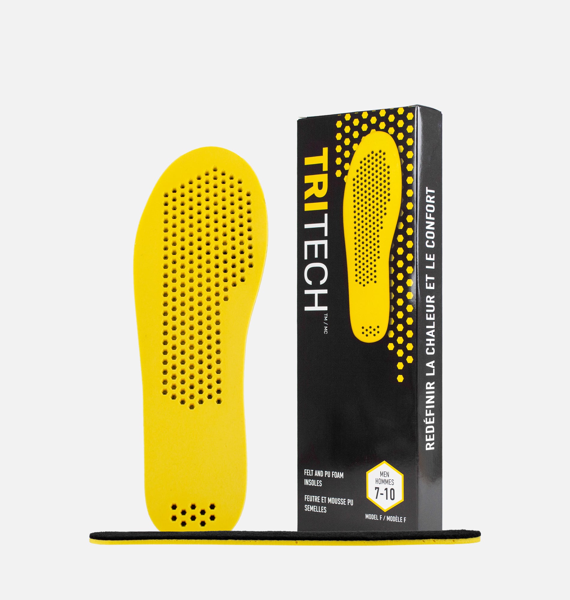 Stay warm, dry, and comfortable all winter long with the TriTech Winter Boot Insole. Designed with a durable PU foam base that absorbs shock, a felt upper layer for insulation, and moisture-wicking hexagonal holes on the bottom, this insole keeps your feet cushioned and protected in every step. The trim-to-fit design makes it easy to customize for the perfect fit in any winter boot.