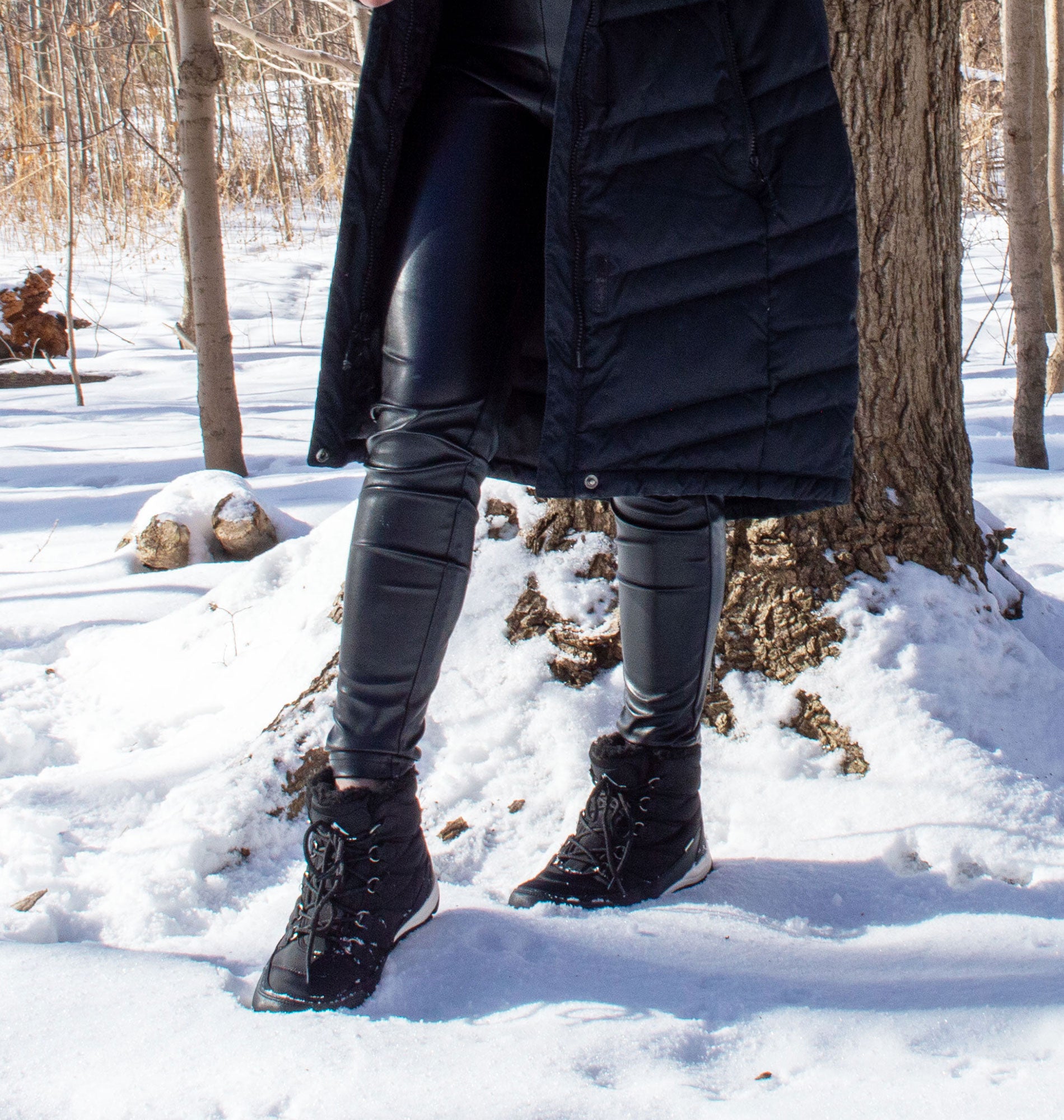 These waterproof lace-up ankle snow boots are lightweight yet solid. They are warm and retain heat well, IME they are best for cooler conditions but not quite warm enough for -40 C temperatures.They are easy to slip on and off, even with a broader foot. These boots have flexibility and perform well on various terrain conditions. They would be great on groomed trails, but because they are not very high, deeper snow would not protect the ankle. The grip is adequate, but I still add grippers when traversing icy conditions.Their waterproofness effectively keeps the feet and socks dry as long as the snow/mud/water doesn't exceed ankle height. The tongue's placement seems to cover the foot well without gaps, ensuring good insulation and heat retention and preventing moisture from entering the boot.These boots are comfy and supportive, even for my flat feet and instep.